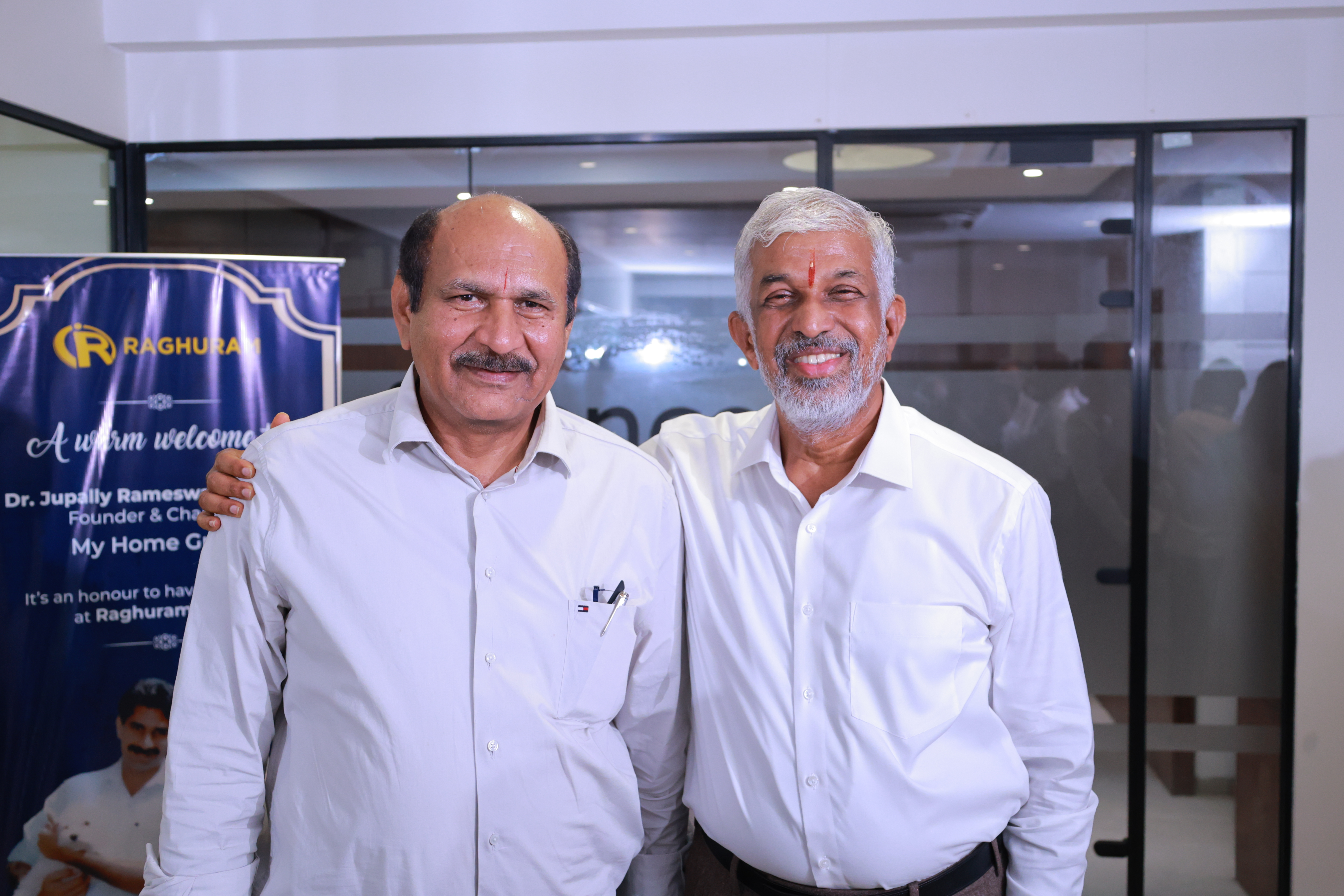We were privileged to host Mr. Jupally Rameswar Rao, Managing Director of My Home Group, at Raghuram Group. This visit was not just a professional meeting but a heartfelt reunion between two long-time friends, filled with warmth, shared memories, and mutual respect.